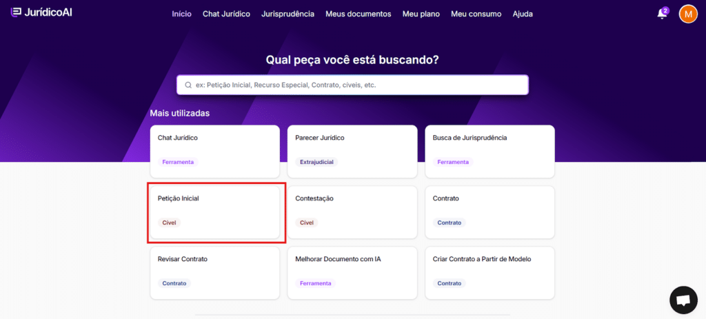 Desse modo, a Jurídico AI foi desenvolvida para apoiar o advogado na estruturação da peça, organização dos fundamentos e adequação à legislação vigente, reduzindo tarefas operacionais e aumentando o foco na estratégia do caso.