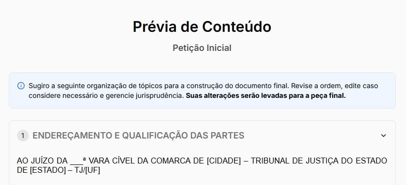Concluída a etapa anterior, a ferramenta gera uma prévia da petição inicial.